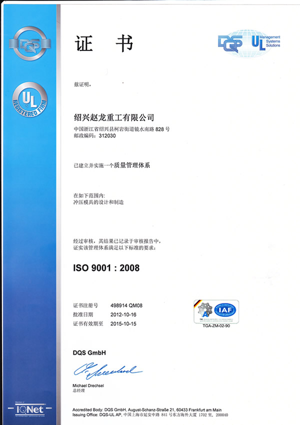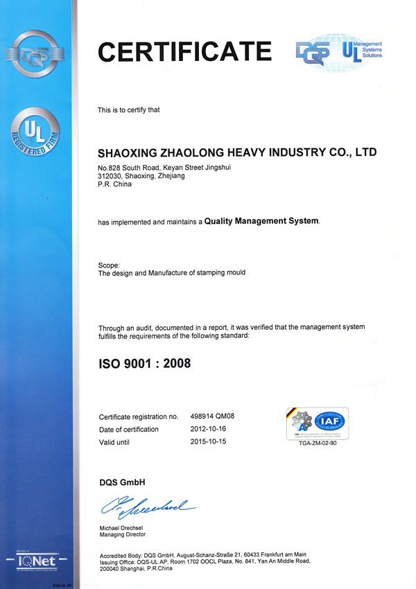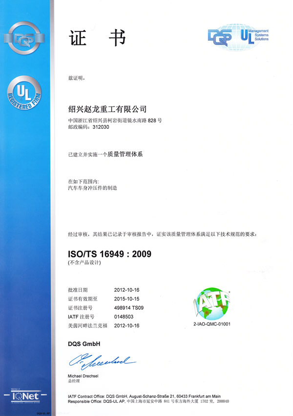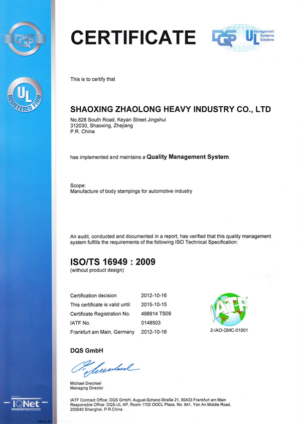 熱烈祝賀公司通過ISO/TS16949:2009和ISO9001:2008質(zhì)量管理體系認證