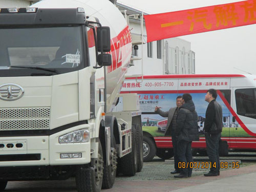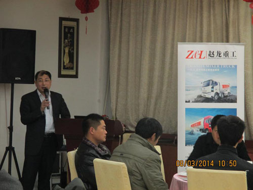 2014年3月8日,在美麗富饒的園林城市蘇州,浙江趙龍重工有限公司聯合一汽解放召開了首次“一汽解放·趙龍重工國四混凝土攪拌車推介會”。此次會議邀請到了太倉地區(qū)各個攪拌站負責人以及周邊地區(qū)的行業(yè)用戶共計40余人。