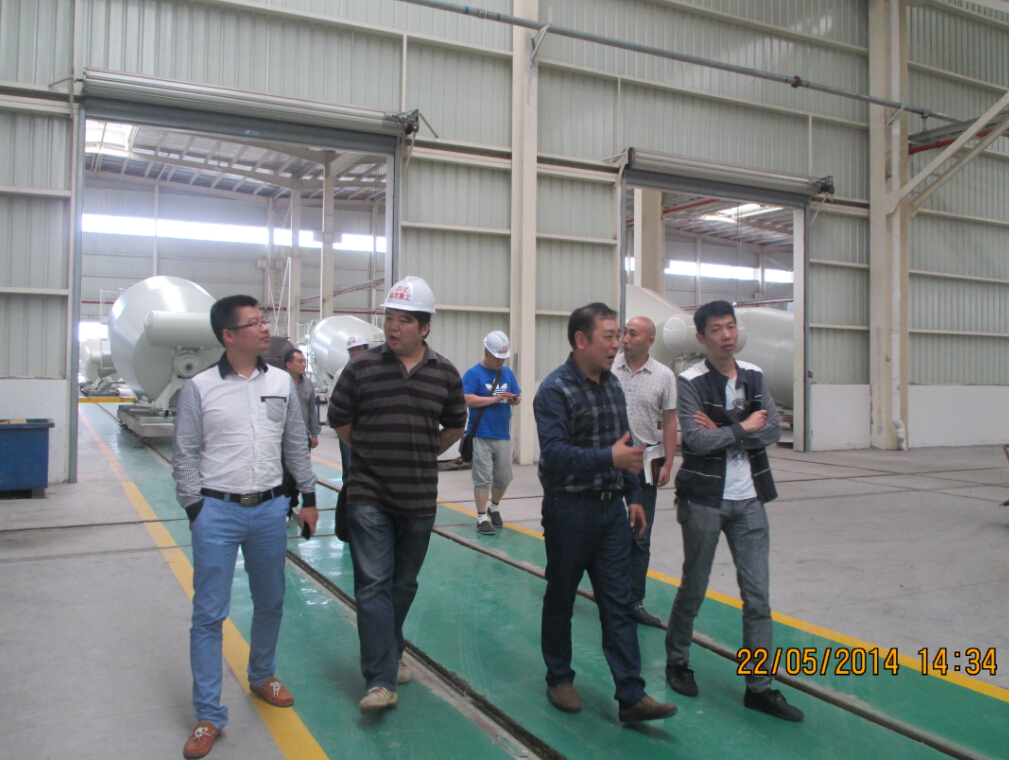 趙龍重工作為義烏市重點項目工程之一,以生產(chǎn)大型預(yù)拌混凝土攪拌運輸車為主,受到了金華市散裝水泥發(fā)展與應(yīng)用協(xié)會(以下簡稱“散協(xié)”)和義烏散裝水泥辦公室(以下簡稱“義烏散辦”)的高度重視和關(guān)注。5月22日,為了及時了解并全面掌握趙龍重工生產(chǎn)經(jīng)營情況以及存在的困難和問題,義烏散辦主辦的“大走訪”企業(yè)調(diào)查活動于我公司義烏生產(chǎn)基地順利開展.金華市散協(xié)斯敬明副理事長及楊欲發(fā)秘書長、義烏散辦王恒華主任、義烏商混公司朱小明等領(lǐng)導在我司總經(jīng)理斯之清、馬宏偉陪同下共同參觀了義烏特種車生產(chǎn)車間。