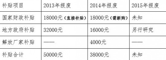 以上海為例:車主報廢2007年注冊登記的重型載貨車換購解放J6P牽引,2013-2015年不同年份報廢所享受的補貼如下: